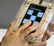Several methods can be used to create such feedback. One way is to put a material that bends when charged under a screen to simulate a click, while another uses electrostatic vibration to put a cushion of air under your finger, making a surface feel smooth or sticky. I’ve experienced such haptic feedback myself, and while some sensations are accurate, others are just weird. There’s also the question of extra cost, weight and power consumption to consider. Still, Tan thinks it could find a place in specialized applications like devices for the blind — and Fujitsu even plans to launch a tablet using the tech as early as next year.