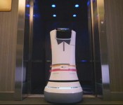 If you plan to stay in Cupertino’s high-tech Aloft Hotel in the near future, don’t be surprised if you open your door to a 3-foot-tall robot carrying extra towels or breakfast. See, it’s the Starwood property’s new butler (officially called A.L.O. Botlr, which is short for “robot butler,” of course) programmed to assist the hotel’s concierge in catering to your requests. The 100-pound machine comes loaded with a 7-inch tablet screen to interact with guests and staff, as well as 4G and WiFi connections so it can call elevators when it needs a ride. Let’s say you pinged front desk to ask for new toiletries — the staff then just loads the items (as long as they don’t exceed two pounds) in an empty compartment on top of the robot and inputs your floor and room number on the tablet interface. You’ll know Botlr’s lurking outside the door when it calls up the room’s phone, and instead of a crisp $20 bill, all it asks in return is a tweet with the #meetbotlr hashtag.