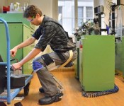 Most of the wearable gadgets getting people hot and bothered either strap onto your face or your wrist, but Swiss startup noonee has cooked up a little something that straps to your legs instead. Well, fine, maybe it’s not exactly little: in a bid to keep factory line workers more alert and more comfortable during their shifts, the five person team has developed a locking leg support device they call the Chairless Chair. Once you get strapped in, all it takes is a press of a button to get settled — the aluminum and carbon fiber frame holds whatever position your legs take and essentially becomes, well, an invisible chair. The secret sauce here is a battery-powered dampening system eases the load on your lower back and legs by supporting the your body weight and directing it down into your heels. Noonee’s curious wearable is still firmly in the prototype phase (though Audi and BMW will soon take the thing for spin on its production lines) but if it works as well as the team says it does, expect every haggard commuter — or frenzied blogger cranking out stories at a trade show — to own one soon enough.