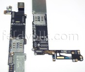 iPhone 5s logic board (left) and 4.7-inch iPhone 6 logic board (right)