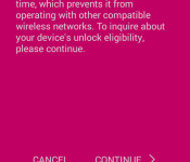 The Device Unlock app only works with the more recent Samsung Galaxy Avant, a mid-range Galaxy device that is only $216 full price. The app offers a quick and simple UI to request that your Avant is SIM unlocked so that it can be used on other carrier networks at will. Pretty nice really. I assume this came about for more reasons than just a customer pain point. No one likes to call in to request a SIM unlock code. I assume this also got pushed through based on number of calls from customers who are only requesting an unlock code. Drive down the call volume, save time and money.