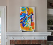 On the inside, it uses far-infrared technology to generate heat. It’s effective, as I found in my in-person demo, though it never actually gets hot, as the product name would suggest — no one’s going to get burned if they accidentally back up into the painting. There is at least one potential flaw with this setup, though, and that’s that the temperature is not adjustable; the heat’s either on or it’s off. Another downside — and this isn’t obvious from the press photos — is that you need to plug the thing into an outlet. OK, maybe “downside” is the wrong word here; the space heater you already own probably uses AC power too. And hey, it might not be an issue at all if you place the thing outside, against a wall. The problem is, having a cord snaking out from the back of the painting ruins the disguise; it’s obviously some sort of appliance, albeit a very pretty one. In the future, Hot Art’s parent company BRZ Brands intends to sell a “permanent mount” version with the cord hidden behind the frame, but you won’t be able to buy that through the company’s Kickstarter campaign.