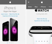 Following today’s announcements of the iPhone 6, iPhone 6 Plus, and Apple Watch, Apple has launched a redesigned website with a brand-new interface for mobile devices. The new interface emphasizes a flat design aesthetic, which includes a drop-down menu bar that allows users to scroll through Apple’s product line.