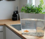 Hydroponics is a method of growing crops in small quantities of water that not only helps preserve our most precious resource, but also alleviates the strain on farmland. EcoFarm takes this idea one step further by creating an almost self-contained system that helps a fish and herb garden work in tandem with each other. The effluent poop-filled water from the fishtank below is pumped up to the tabletop herb garden in the lid. The plants then purify the water by drawing out the poop nutrients, with clean water then trickling back down into the fish tank for the cycle to begin again.