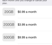 Users can now get 20GB of storage for $0.99 per month, 200GB of storage for $3.99 per month, 500GB of storage for $9.99 per month, and 1TB of storage for $19.99 per month. The iCloud upgrade options can be accessed in the Settings app under iCloud —> Storage & Backup —> Change Storage Plan.