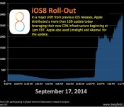According to data from internet research firm DeepField, Apple relied on its content delivery network along with Akamai and Limelight to handle the rollout of iOS 8 publicly this week (via The Wall Street Journal). The release of iOS 8 caused web traffic to more than double in some areas as millions of iOS users rushed to update their iOS devices.