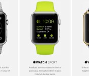 There’s the Apple Watch collection, which has stainless steel or space black stainless steel cases combined with a range of metal and leather bands, the Watch Sport collection, which includes anodized aluminum cases in silver or space gray with colorful, durable bands, and the Apple Watch Edition, which includes 18-karat gold cases in yellow or rose with “exquisitely crafted” bands and closures.