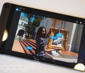 True to Dell’s word, the new Venue 8 7000 is very thin. Its svelte profile leaves it feeling very light in the hand, though Krzanich was unable to tell me its exact weight. The CEO says he’s been testing the tablet out for a few months now, and he’s become quite fond of it. It’s not hard to see why — it’s a light, comfortable device to use — though Intel’s RealSense camera module does leave it looking a little unbalanced. The bevy of camera sensors takes up residence on the device’s left side, embedded in a large speaker bar gracing the tablet on the same end. It gives the device an obvious place to grip without covering the screen, but lacks the symmetry of dual-speaker devices like the HTC One or NVIDIA Shield.