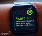 Has the Apple Watch spelled doom for dedicated fitness devices? Apple knows how seriously its users take fitness, which is why it’s built a pair of apps specifically for the new wearable. The first is activity, which eliminates the need for a Fitbit-esque activity tracker by measuring your sitting, standing and movement on a daily basis. For instance, you can set the move ring to disappear when you’ve burned off enough calories that day. It’s the same situation with exercise: which it qualifies as anything over the intensity of a brisk walk, which you need to do for half an hour each day. Then there’s the standing ring, which goes away once you’ve stood for at least a minute in each hour, up to 12 hours. The software will also learn your activity patterns and, when it spots you being particularly sedentary, will give you a Jawbone-esque reminder to get up off the couch.