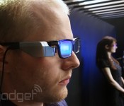 When we brought up the inevitable Google Glass comparison, Kaneko-san was (surprisingly!) positive about the ever-present wire, citing that it kept the weight down by offloading not only computing (and other frills like cameras), but also the battery. Battery life is thus dependent on whatever device it’s connected to, leaving the wearable lighter and more, well, wearable. The real device will appear next year, but consumer models for us mere muggles will likely be a while after that — for now, this is a business-centered wearable — which probably explains the “goggle edition.” (Our words, not theirs.)