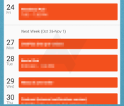 The main view for the new Calendar app is called the “Schedule” which puts the month on top with a bottom pane displaying weeks or days with events embedded therein. Users can quickly pull down the month to see a small display of the entire month similar to how some third-party calendar apps display things. Using the overflow icon, users can access other views for days or weeks as well as a search option.