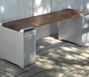 As part of a project aptly titled “Benchmarc”, Geiger has carefully created a sitting bench using a carved wooden plank that forms a bridge between two Power Mac G5 units. The machining on the wood is aligns the curve perfectly with the shape of the Power Mac chassis.