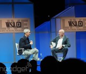 Answering a question about whether the Android vs. iOS wars will end up like the Mac vs. PC one, Cook said that wasn’t a fair comparison. “There weren’t enough apps on the Mac,” he said. “That isn’t a problem for iOS.” He adds that iOS has over 1.3 million apps, and that generally speaking, developers are writing iOS apps first and then porting them to Android. “We sold a quarter billion iOS devices last year. I wouldn’t call that a low-volume business.”