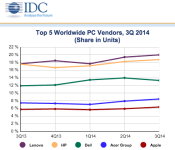 The company gained ground with 13.4 percent of the US PC market, edging out Lenovo (10.7 percent) to grab the number three spot behind HP (27.7 percent) and Dell (24 percent). Shipments in the US climbed to more than 2.26 million in the third calendar quarter of 2014.