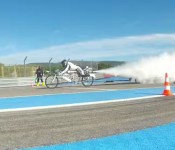 You probably don’t think of bicycles as speed demons, but Arnold Nearcher and François Gissy would beg to differ. They’ve respectively developed and raced a rocket-powered bike that just broke a world speed record for the vehicle class, hitting a brisk 207MPH. It’s not the fastest two-wheeler of any kind, but the acceleration (maximum speed arrives in five seconds) is enough to put supercars to shame. As you’ll see in the video below, the machine can outrun a light-yet-powerful Ferrari F430 Scuderia without breaking a sweat. Given the dangers involved, you won’t be riding a rocket bike on your daily commute any time soon. Still, it’s an impressive feat — think of it as poetic justice for every time a motorist has cut you off while you’re pedaling down the street.