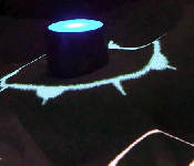 Tucked away under a tent at Expand 2014 was perhaps the coolest exhibition on the show floor: Sand Noise Device, a literal interactive sandbox experience. No, this isn’t a new Grand Theft Auto; it’s powered by hacked gaming tech, though, including an Xbox 360 Kinect sensor and a PlayStation Eye camera. Watching it in action immediately brought memories of Xbox 360 classic Geometry Wars to mind, actually. A ring radiates out from a center origin point, and when it hits the glowing, multi-colored pucks (that are tracked for position by the PS Eye), a series of particles start shooting outward.