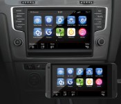 Later this year, VW will introduce the second generation “modular infotainment platform” (MIB II) in the United States. Along with the new infotainment system, MirrorLink™ will also be made available for the first time, integrating the apps and operating layout of numerous smartphones (including Samsung, HTC, LG and Sony) into cars. When MirrorLink™ is introduced, two other interfaces will also be launched under the App-Connect label: CarPlay™ (Apple®) and Android Auto™ (Google®). Simultaneously, VW will also launch CarPlay™ and Android Auto™ in the European market.