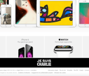Apple has updated its French website today to show support for French satirical publication Charlie Hebdo, whose Paris offices were subjected to a terrorist attack yesterday. If you visit the site now, the words “Je Suis Charlie,” French for “I Am Charlie,” are displayed on a stark black banner across the bottom of the page.