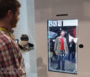 Toshiba was demoing its Virtual Fitting Room at CES this year. The premise is simple, stand in front of a large display while your image is projected on it. Using a Kinect for motion tracking, Toshiba’s software is able to superimpose various outfits onto your reflected self. Hold your right hand up to change outfits and your left to snap a selfie, that the software then throws up as a QR code so you can grab your pic. Typical of this type of virtual thing the clothes tended to wiggle about and were a bit ill fitting, but they were women’s outfits so we’ll give them a break there. We can see practical applications for trying clothing combinations without having to use a dressing room if you’re in a hurry, for example. Though, we don’t think using it for sizing would be useful at all, which is a large part of a fitting room’s job.