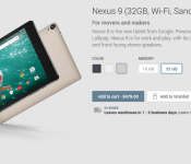 Only the 32GB storage option of the Sand Nexus 9 is available as of right now, with a price tag of $479 and a 1 to 2-day shipping window. This goes for the WiFi-only model, as the LTE-enabled model is still only available in Indigo Black.