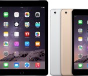 Apple also offers the original iPad Air in its current lineup. When comparing the 16GB models (the iPad Air is available with 16GB or 32GB storage), you save $100 if you go with the iPad Air, but it lacks the Touch ID, iSight burst mode, and the anti-glare screen that is found in the iPad Air 2. It’s also a little thicker and uses an older and slower 64-bit A7 processor with an M7 motion coprocessor. The iPad Air 2 is worth the extra money, even if only for the laminated anti-reflective display that makes content look absolutely gorgeous.