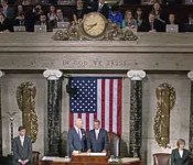 Michael McAuliff, Senior Congressional reporter for the Huffington Post, tweeted a picture of the U.S House floor during the State of the Union. There, in the press gallery above the president and vice president, can clearly be seen a veritable forest of aluminum MacBooks replete with brightly shining Apple logos.