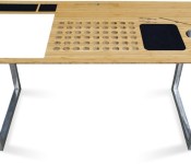 Like the original SlatePro TechDesk, the new edition’s main attraction is its built-in air vents for keeping laptops or desktop computers cool and its cutouts that are able to house an iPhone and an iPad. Design wise, the Special Edition SlatePro takes on a more popular U-shape with steel legs and a hazelnut bamboo surface.