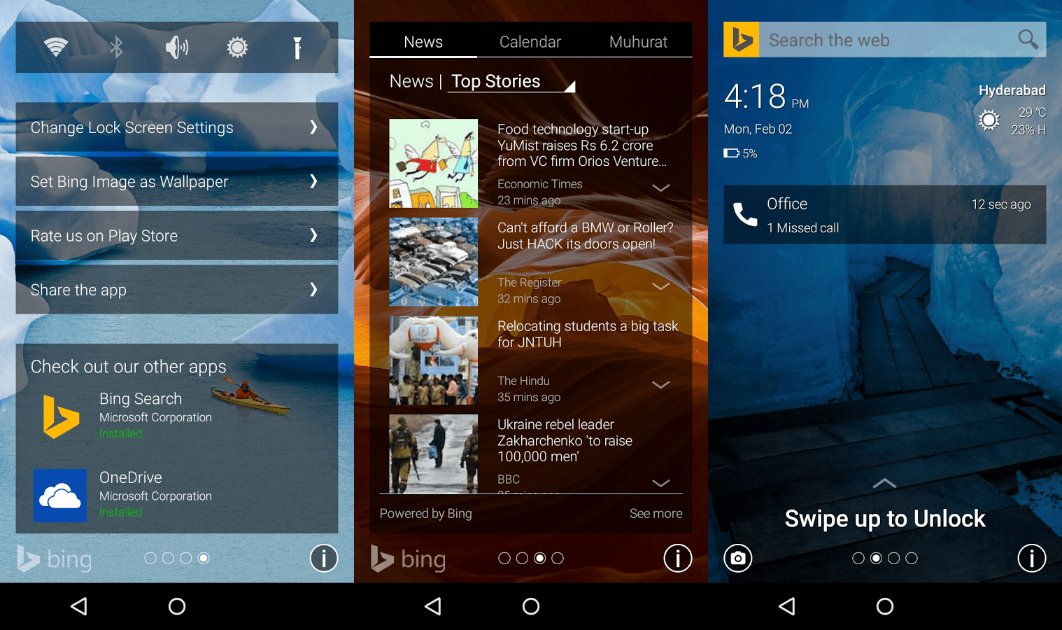 - Beautiful Bing Homepage images: Your lock screen will be updated with the beautiful daily Bing image; you could swipe through the images from past 6 days or shake your phone to change the image on your lock screen.