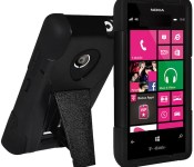 This Nokia Lumia 521 hybrid case provides serious protection against drops and scratches while sporting a built-in kickstand that can be used for watching movies and more. The inner-most layer is made of a shock absorbing silicone that sits underneath a thick plastic exterior.