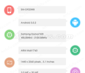 According to this new revelation, the Galaxy S6 Edge will pack a 5.1 inch 2560 x 1440 resolution display, 3GB of RAM, 32GB of internal storage (possibly expandable), a 20-megapixel camera, a 5-megapixel front facing camera and the Samsung Exynos 7420 chipset with the Mali-T760 GPU. Naturally, the device shown here is running Android 5.0.2 Lollipop by default.