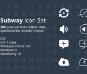 One icon set often seen in BlackBerry 10 apps is Subway from Pixle which was previously offered through their site for free in PNG but other formats required a fee of $9.99. Pixle has changed that up a bit now and has begun offering the 306 icon pack optimized for mobile devices on Github for free which includes SVG, XALM, PSD, AI and EPS formats.