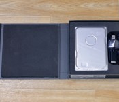The Seagate Seven ships in a slim, padded box that contains the hard drive, a black fabric-covered USB cord to connect the drive to a computer, and a Quick Start Guide.
