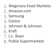 Amazon continues to be one of the strongest performers year after year on the strength of their breadth of products, customer focus and public trust, although they did get supplanted at the top by Wegmans Food Markets. Meanwhile, both Microsoft and Sony slipped out of the top ten even as Google managed to slide in to grab the final top ten spot.