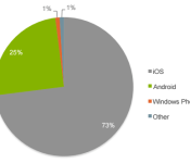 Specifically, the iPhone 6 and iPhone 6 Plus made up 30% of all activations during the fourth quarter, with the iPhone 6 to iPhone 6 Plus split being 77% and 23% respectively. Android activations dropped from 29% during the third quarter to 25% in the fourth quarter, while both Windows Phone and all other mobile platforms each represented a 1% share of activations.