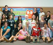 At App Camp For Girls, campers receive a broad introduction to the process of iOS app development, from brainstorming and designing ideas to building and pitching their apps. The girls use Mac computers and Xcode, Apple’s suite of developer tools, to build their apps and run them on iPod touch devices. By building an app in one week, campers get a sense of accomplishment that can spark their enthusiasm to pursue further tech education.