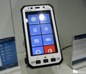 Part of the fun of events like Mobile World Congress is not only the new devices, but getting to see ones you’d never normally come across in every day life. The Panasonic Toughpad FZ-E1 is one such device that we saw while hanging out with Microsoft’s OEM partners division in Barcelona. You won’t see many around, but it’s the toughest Windows Phone there is.