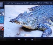 At least, that’s the theory. After trying it, we found some illusions like the slippery surface to be very convincing, for instance. But the rough texture sensation feels more like the screen is just sticky, and the bumpy experience is even less convincing. When touching the crocodile skin, it just felt like I was moving my finger over slippery and then clingy patches. There’s also a strong buzzing sensation, which is mildly disconcerting. All that said, though, it was still a lot of fun, and it’s hard to see how you could get much more realistic than that with a smooth, 2D surface. There’s a video after the fold showing it in action, but we apologize for the occasionally poor sound quality — as you’ll see, each time the haptics activated, it messed up our camera’s microphone.