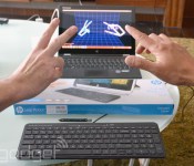 Given that HP plans on selling this to businesses and government agencies, you can bet it has all sorts of security measures in places. These include TPM and a Smart Card reader, as well as an optional fingerprint scanner. Spec-wise, it’ll start with a Celeron processor, with options for Pentium, Core i3 and Core i5 (the Surface Pro 3 goes up to i7). Storage capacity ranges from 64GB to 512GB; screen resolution starts at 1,366 x 768 but goes up to full HD. A built-in 4G radio will be an option too, as will Windows 7. HP says it will retail ship in September, with the power keyboard included. You can also buy the standalone tablet, in which case it’s just called the Pro Tablet 612 (no “x2″). Oh, and if you’re put off by the weight, there’ll be a lighter-weight “travel” keyboard too. Until then, check out our hands-on photos above — and take our word for it when we say the keyboard is pretty good.