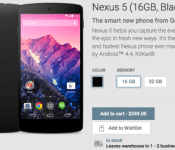 Never got around to purchasing the Nexus 5? Then rush over to Google Play right now because the device is in-stock, albeit in a limited way. Only the black color option in both 16GB and 32GB storage sizes is now available. The 16GB version costs $349 with 32GB adding $50 to that price. Both will leave the warehouse within 1-2 days of ordering.