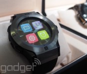 The Halo is a heavy, thick watch that comes in two variants — an extra thick model (the Halo-2) that features extra batteries in the wrist-band and room for a sim-card as well as a slightly slimmer (but still notably large) Bluetooth model. Both watches run a heavily stripped down version of Android and can be used to make and accept calls and text messages (as as Google Hangouts) and display weather data. The experience is responsive, and overlays the traditional watch nicely, but it’s extremely limited. This is a last generation smartwatch embedded within last century’s timepiece.